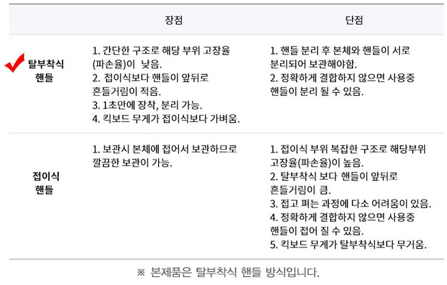 핸들 고정 버튼을 눌러주는 버튼이 별도로 있어 편리하게 분리가 가능합니다.