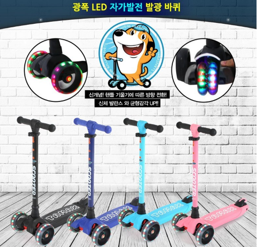 바퀴4개 모두 자가발전 고휘도LED 발광바퀴