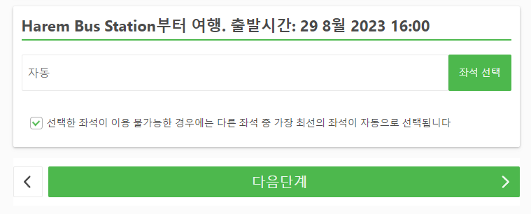 이스탄불에서 트빌리시로 이동하는 교통편 예약시에는 휴대폰, 이메일, 이름, 성을 입력하고 성별을 선택하고, 좌석은 자동 또는 선택하실 수 있습니다.