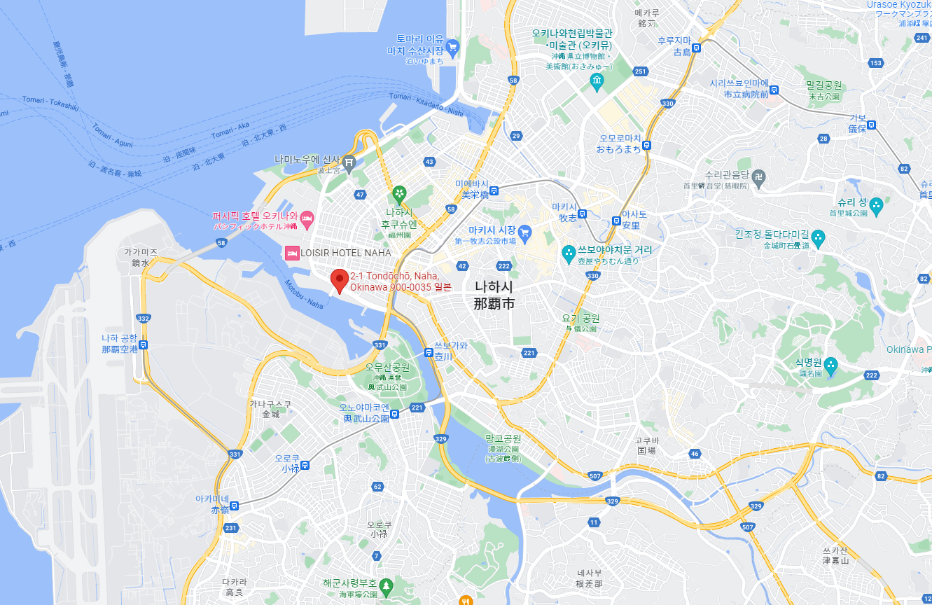 지하철 이용시: 아사히바시역에서 오키나와 모노레일을 타고 약 10분
