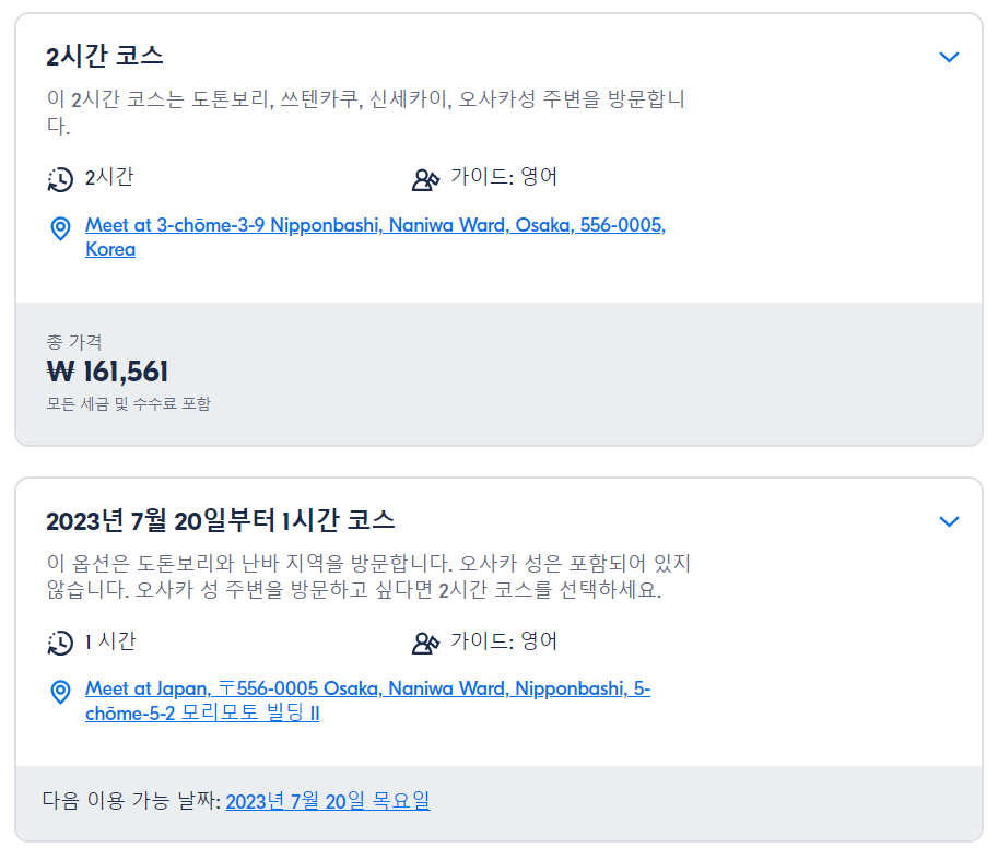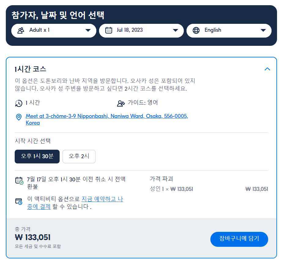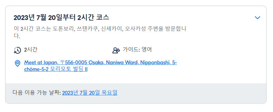 EX) 2시간 코스 옵션 미팅포인트