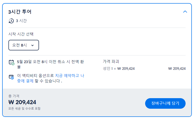 그리고 한국인들이 많이 참여하는 투어보다 다양한 나라의 사람들이 많이 참여하는 만큼 다른사람들 시선을 신경쓰지 않고 편하게 여행을 즐기길 원하는 사람들에게 더욱 추천합니다. 한국어로 쉽게 예약할 수 있고 한국분들이 많이 참여하는 투어는 klook 여행사이트에서 예약하시고 한국분들 많이 참여하지 않는 현지투어의 분위기를 좋아하시는 분들은 GET YOUR GUIDE에 예약하시면 됩니다.