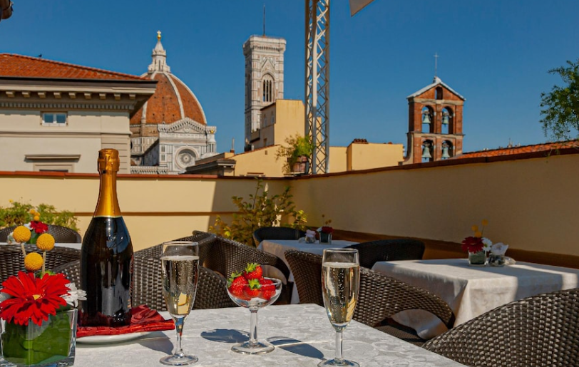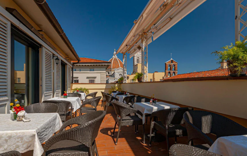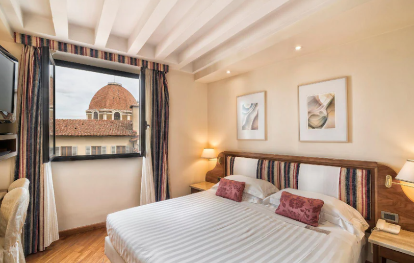 객실은 고풍스러운 분위기와 현대적인 편의시설이 조화를 이루며, 아침 식사 시간에는 대성당이 내려다보이는 아름다운 전망을 감상할 수 있습니다. 호텔 인근에는 우피치 미술관, 베키오 궁전, 메디치 궁전 등 유명 관광지가 즐비해 있어 걸어서 둘러볼 수 있습니다.