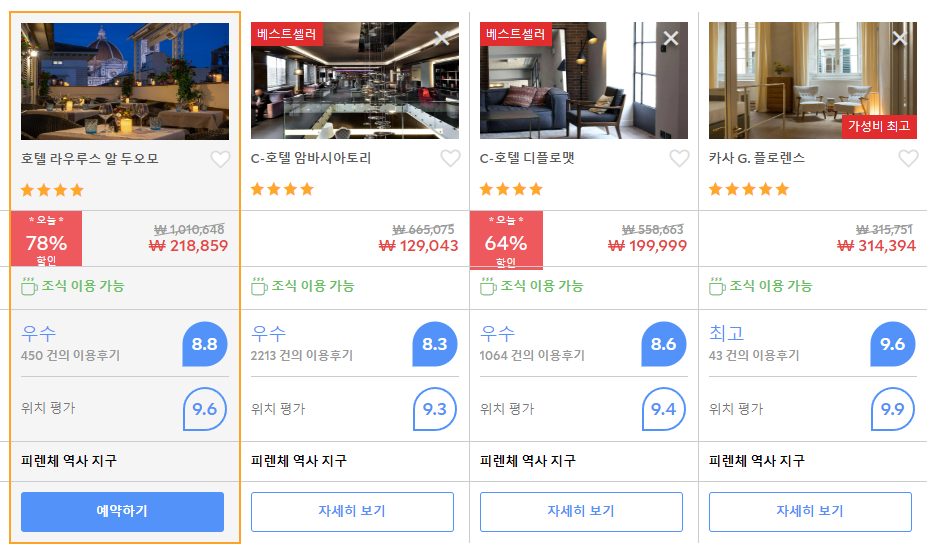 피렌체호텔 / 이탈리아 피렌체여행의 깨끗하고 분위기 좋은 산타마리아노벨라역에 위치한 C-호