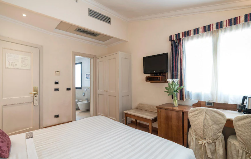 이 호텔은 모든 것의 중간에 있습니다. 아름다운 발코니 전망과 맛있는 아침 식사로 하루를 시작하십시오. 우리는 도시 전체를 걸었고 쇼핑을 할 때마다 호텔은 항상 근처(도보 5-15분)에 있어 우리 방에 가방을 놓고 시설을 사용하고 귀중한 시간을 낭비하지 않고 도시를 탐험할 수 있었습니다. 호텔의 모든 사람들은 항상 친절하고 도움이 되었습니다. 우리는 이 호텔에서 하룻밤 더 머물면서 도시를 즐기기 위해 이탈리아 여행을 재정비했습니다.