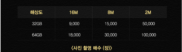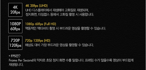 담아낼 수 있는 해상도로 설정이 가능합니다.