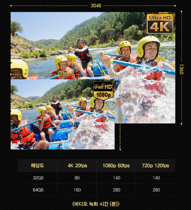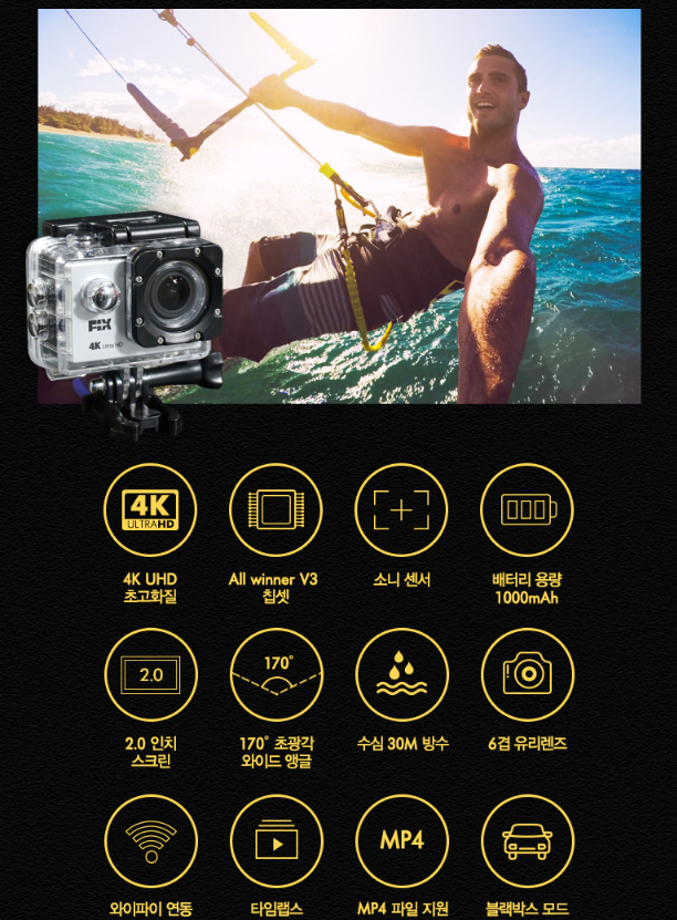 UHD 화질을 선사하여 액션캠을 처음 접하는 입문자들은 물론,