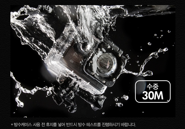 수상 레포츠와 우천시에도 고장 걱정 없이 사용할 수 있는 30m 완벽 방수 케이스를