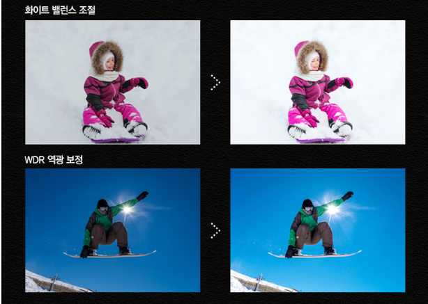 화이트밸런스 모드와 역광 보정 모드를 지원하여 빛의 영향이 많은