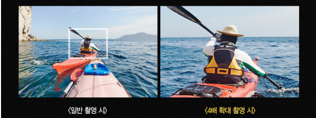 최대 4배까지 확대되는 줌 기능으로 멀리 있는 피사체도 무리 없이 촬영이 가능하며