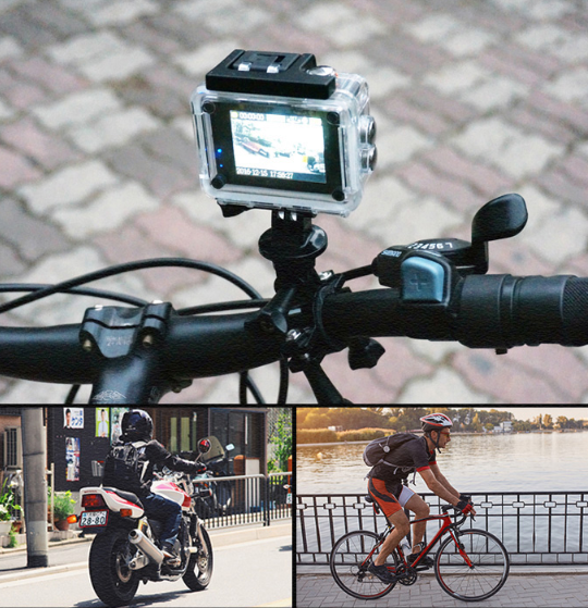 핸들바에 액션캠을 장착하면 자전거, 오토바이 주행 중 일어날 수 있는 모든 상황을