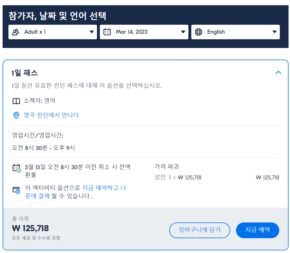 런던 패스는 융통성이 있습니다. 예약한 당일에 사용할 의무는 없습니다.