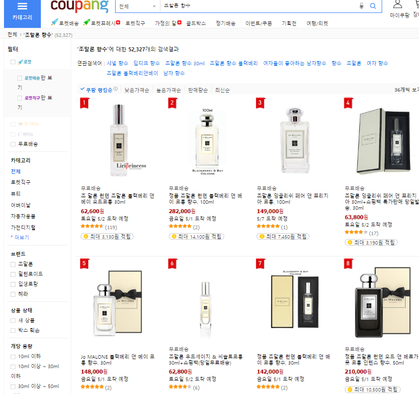조말론 향수는 쿠팡에서 구매하실 수 있으며,