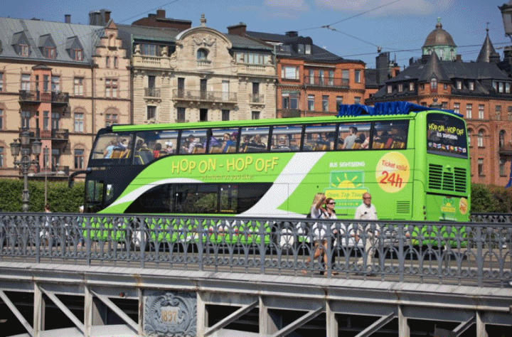 녹색의 자유로운 승하차가 가능한 버스와 붉은색의 City Sightseeing Stockholm 버스를 타고 무제한 투어를 즐길 수 있습니다.