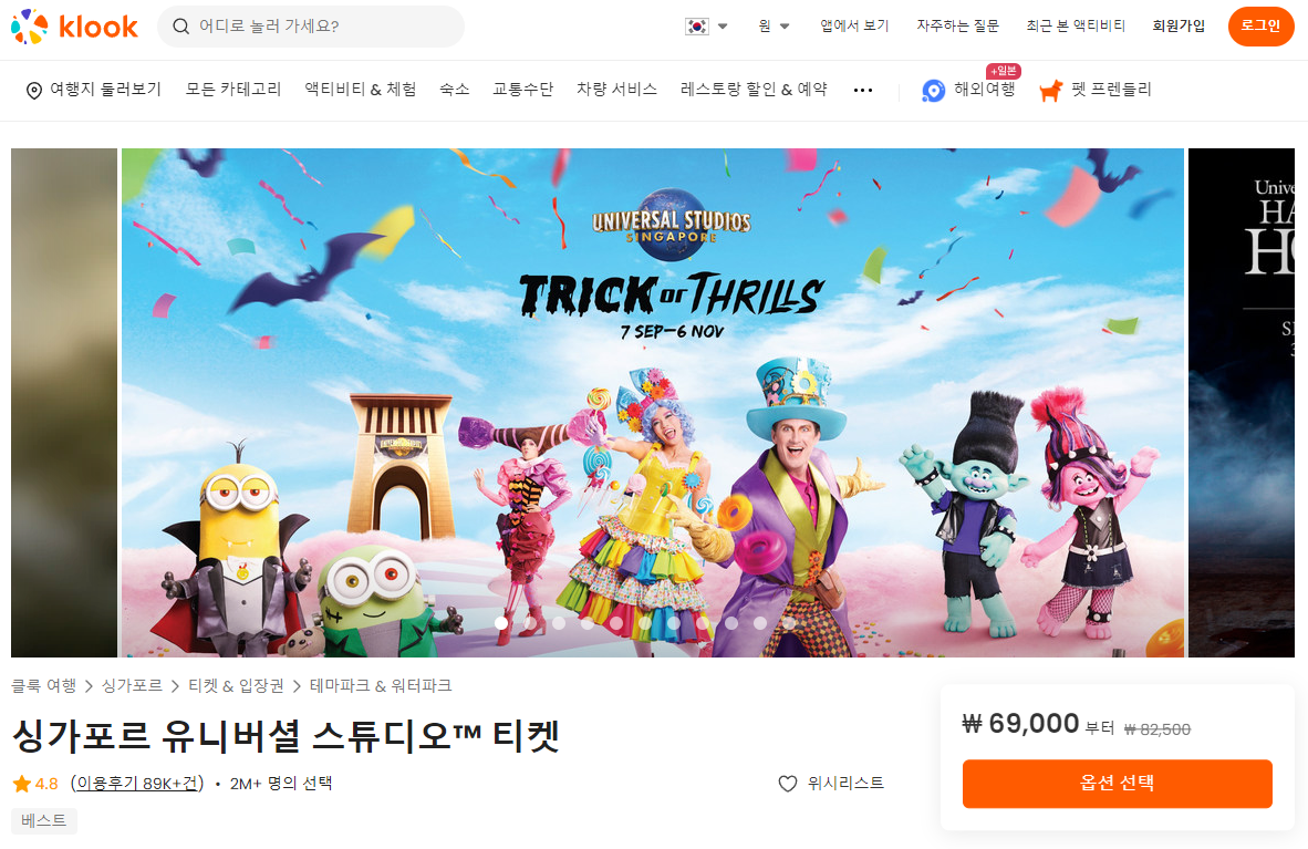 유니버셜 스튜디오 싱가포르 티켓은 클룩사이트에서 쉽게 예약하실 수 있으며,