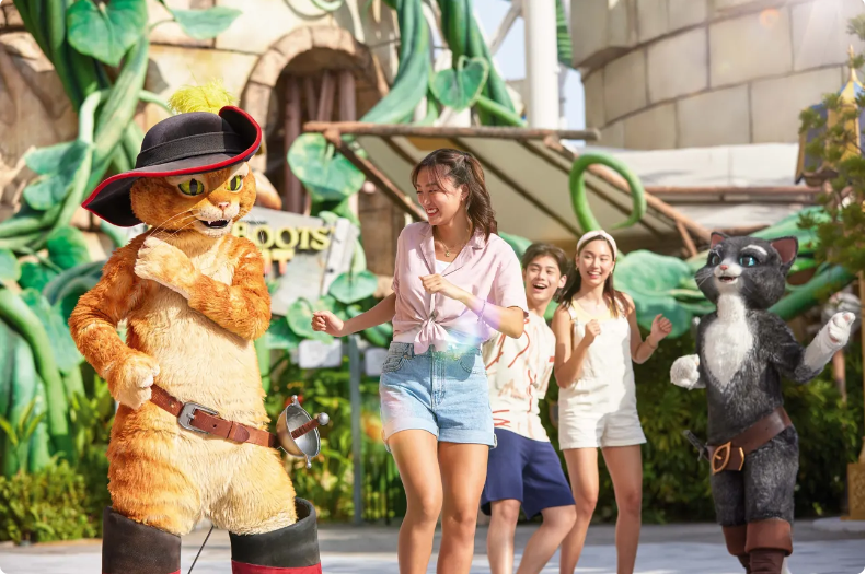 미니언즈, 주라기 월드, 변형 로봇 트랜스포머 등 다양한 테마존이 마련되어 있어 모든 연령대의 방문객들이 흥미롭게 즐길 수 있습니다. 또한 스릴 넘치는 롤러코스터와 4D 영화관, 쇼 등 다채로운 볼거리와 체험거리가 가득합니다.