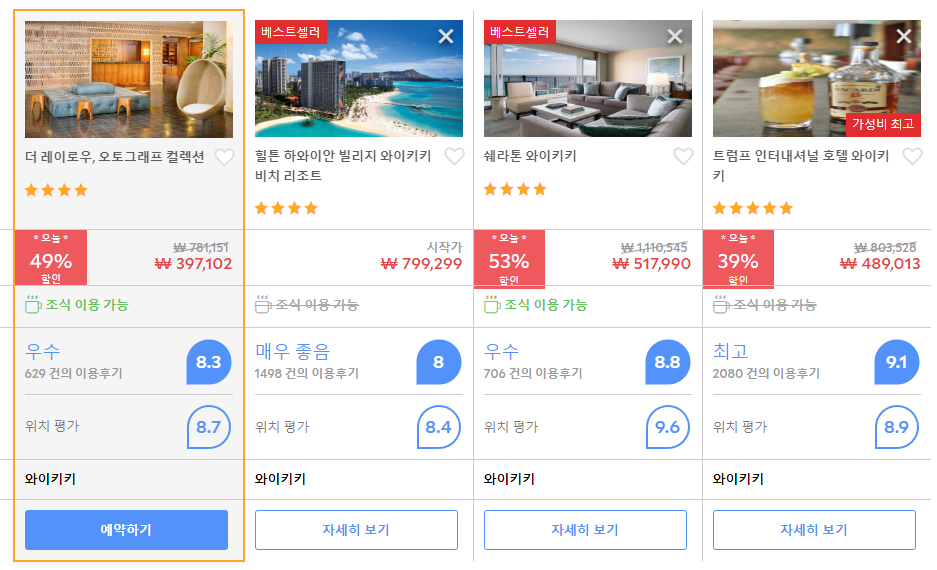 하와이호텔 더 레이로우, 오토그래프 컬렉션(The Laylow, Autograph Collection)의 최저 가격대는 아고다웹사이트에서 할인특가 가격으로 매일매일 변동되며 10만원대부터 다양하게 형성됩니다. 날짜별로 매일 가격이 다르므로 아고다웹사이트 최저가를 확인하시려면 아래 링크를 누르시고 원하는 날짜의 가격대를 선택해야 정확한 가격을 자세히 보실 수 있습니다.