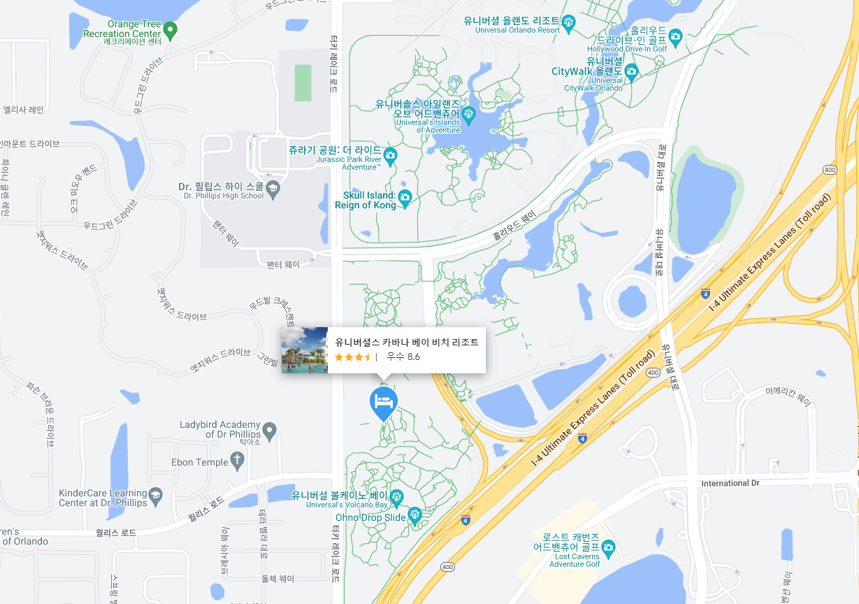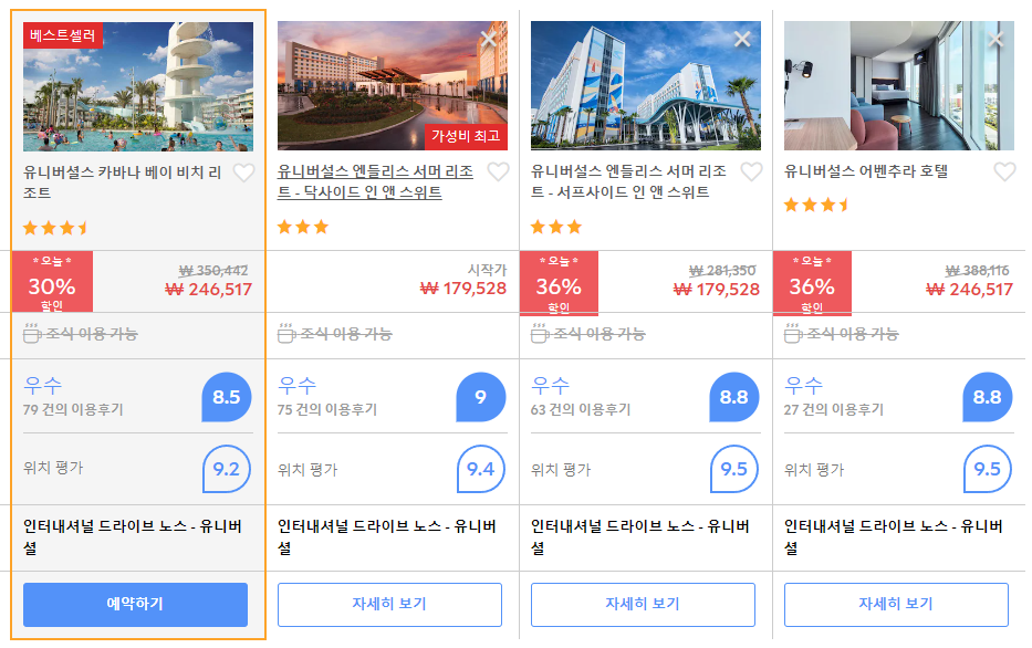 유니버셜스 카바나 베이 비치 리조트 (Universal's Cabana Bay Beach Resort)의 최저 가격대는 아고다웹사이트에서 할인특가 가격으로 매일매일 변동되며 20만원대부터 다양하게 형성됩니다. 날짜별로 매일 가격이 다르므로 아고다웹사이트 최저가를 확인하시려면 아래 링크를 누르시고 원하는 날짜의 가격대를 선택해야 정확한 가격을 자세히 보실 수 있습니다.