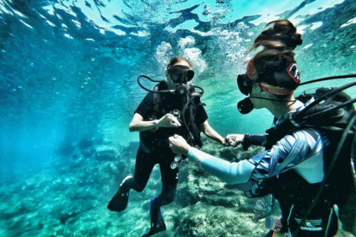 강사님들의 전문적인 지도 아래, 초보자도 쉽게 스쿠버 다이빙의 기본 기술을 익힐 수 있습니다. 수중 세계를 탐험하며 다양한 해양 생물들을 만나게 될 것입니다. 화려한 산호초와 신비로운 동굴, 그리고 아찔한 절벽 등 다채로운 수중 풍경이 여러분을 기다리고 있습니다.