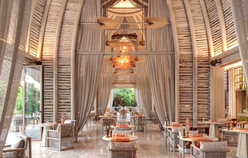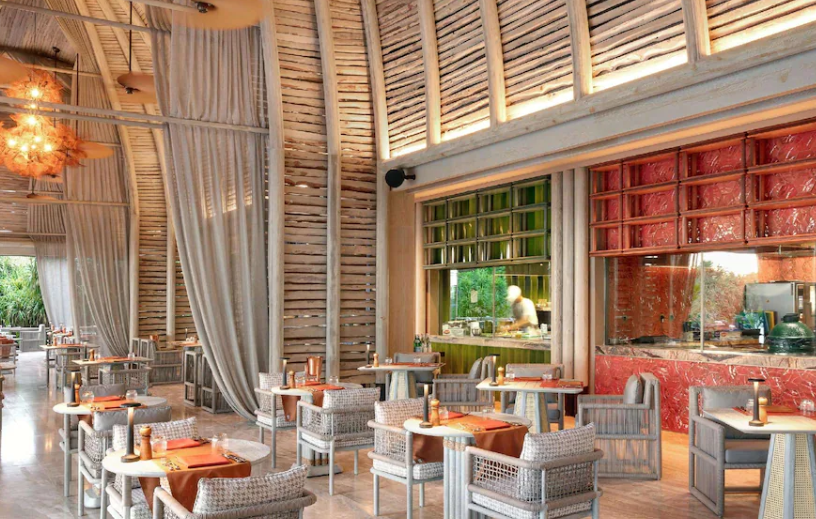 일몰을 찾는 분들을 위해 3층으로 된 일광욕용 데크에 위치한 열대 해변 안식처인 Mojo가 있으며 수영장 옆에서 점심과 일몰을 즐기기에 이상적인 장소입니다. JOALI BEING의 요리 예술은 재료 추적 가능성을 약속하고 소규모 농장을 지원하고 지속 가능하게 공급되는 신선한 현지 수확 식품을 제공하는 땅에서 식탁까지 이니셔티브에 중점을 둡니다.