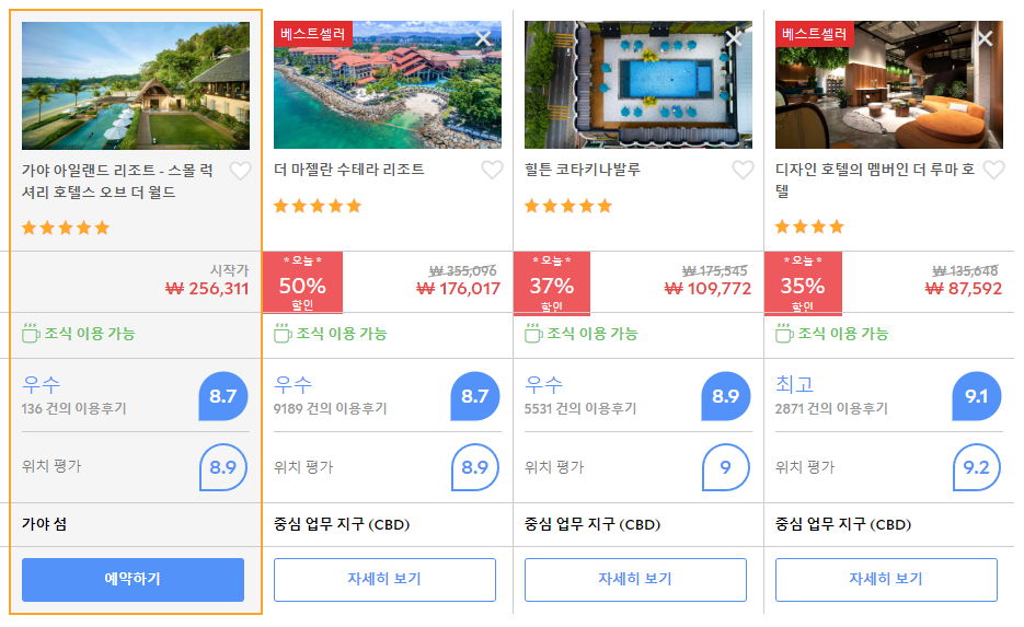 가야 아일랜드 리조트 스몰 럭셔리 호텔 오브 더 월드(Gaya Island Resort Small Luxury Hotels of the World)의 최저 가격대는 아고다웹사이트에서 할인특가 가격으로 매일매일 변동되며 20만원대부터 다양하게 형성됩니다. 날짜별로 매일 가격이 다르므로 아고다웹사이트 최저가를 확인하시려면 아래 링크를 누르시고 원하는 날짜의 가격대를 선택해야 정확한 가격을 자세히 보실 수 있습니다.
