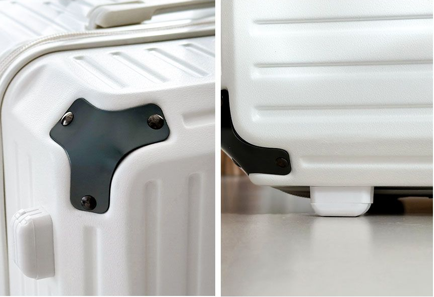 충격에 취약한 모서리 부분의 합금 소재의 보호캡과 측면&후면에 오염 방지를 위한 지지대를 적용하여 바닥에 캐리어를 안심하고 놓을 수 있습니다.