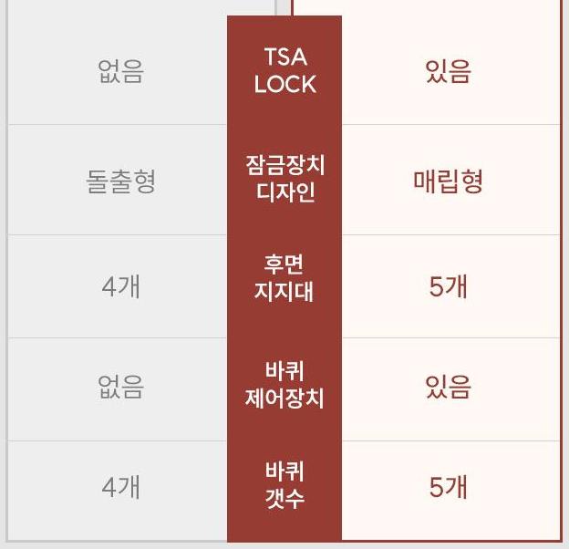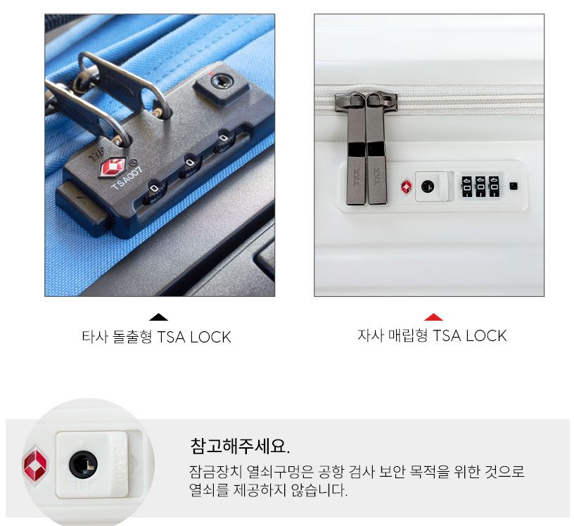 미국연방항공 보안국에서 인증한 락으로 미국 내 공항 이용시. 잠금장치 파손없이 마스터키로 안전하게 검사하는 잠금장치가 설치 되어 있습니다.