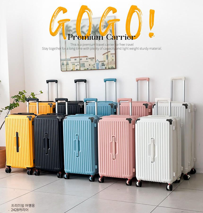 고고캐리어는 여행의 필수품으로 자리매김한 캐리어입니다. 24인치와 28인치 두 가지 사이즈로 출시되어 여행객들의 다양한 needs를 충족시키고 있죠.