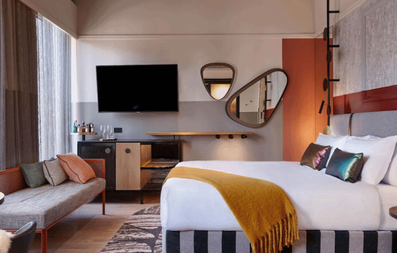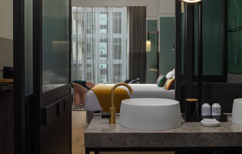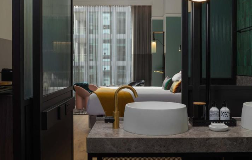 나는 여기서 하룻밤 머물렀고 최고의 수면을 취했으며 침대는 고품질이었습니다. 나는 또한 장식, 어둡고 변덕스러운 분위기를 좋아했습니다. 샤워 시설도 훌륭했고 다이슨 헤어드라이어도 즐겼습니다. 옥상 바는 멋진 전망과 멋진 분위기를 가졌습니다. 호텔을 적극 추천합니다.