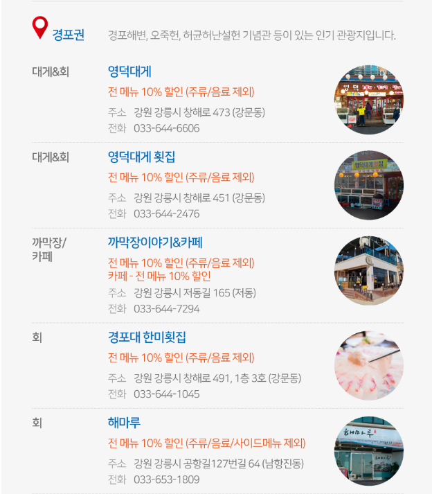 강릉투어패스로 크루즈와 커피 뿐만 아니라 강릉지역 식당과 카페 할인까지 받아가세요! 할인가맹점은 예고 없이 변경될 수 있으니 방문 전 확인바랍니다.