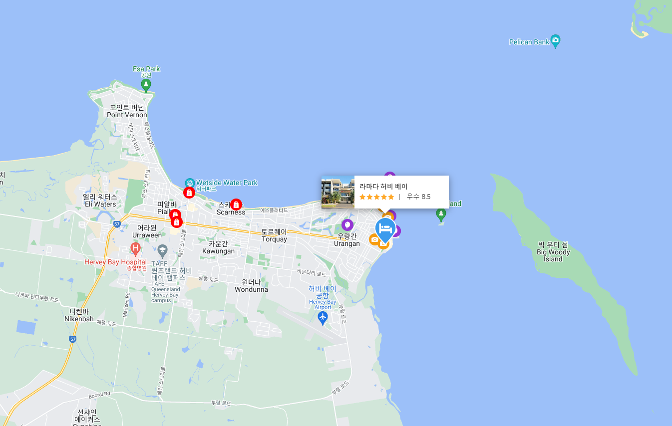 호텔 라마다 허비 베이 (Ramada Hervey Bay)의 최저 가격대는 아고다웹사이트에서 할인특가 가격으로 매일매일 변동되며 10만원대부터 다양하게 형성됩니다. 날짜별로 매일 가격이 다르므로 아고다웹사이트 최저가를 확인하시려면 아래 링크를 누르시고 원하는 날짜의 가격대를 선택해야 정확한 가격을 자세히 보실 수 있습니다.