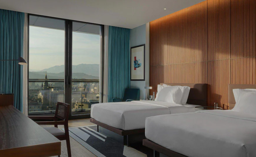 트빌리시호텔추천 / 조지아 트빌리시여행의 객실에서 아름다운 도시풍경을 즐길 수 있는 풀먼