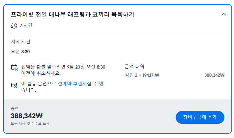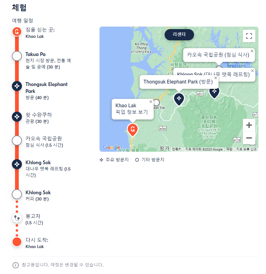 카오속 전일 대나무 래프팅과 코끼리 목욕하기 현지투어는 GET YOUR GUIDE 사이트에서 예약하실 수 있습니다. 사이트는 특히 전세계 대부분의 나라, 지역의 투어, 교통편 있어, 쉽게 찾을 수 없는 여행지의 다양한 투어 및 서비스를 이용할 수 있는 글로벌 사이트로 한국어사이트는 지원하지 않습니다. (글로벌 한국어 여행사이트를 찾으신다면 klook 여행사이트 추천합니다. 함께 사용하시면 더욱 편하게 여행하실 수 있습니다. klook에 찾는 정보가 없다면 GET YOUR GUIDE에서 찾으시면 됩니다.)