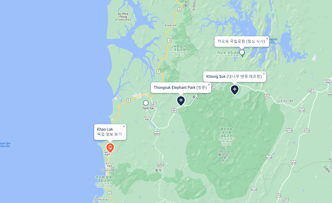 투어가 끝나면 카오락의 호텔로 다시 이동합니다