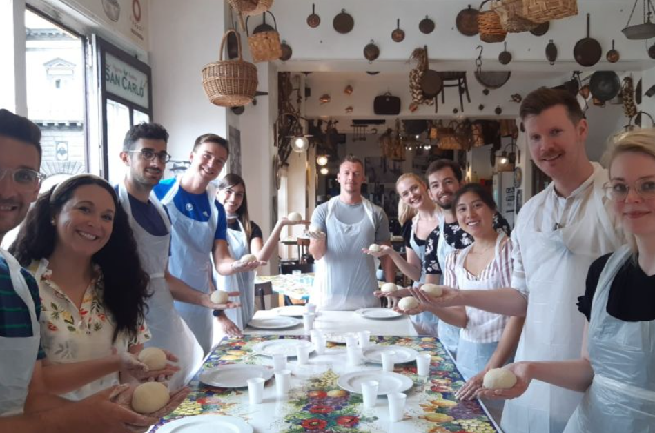 나폴리 중심가에서 최고의 피자를 만드는 수업을 즐기세요! 진짜 영어를 말하는 피자자일로 수업에서 나폴리 피자를 만드는 방법을 배우세요. 여러분은 반죽의 비밀을 배우고, 사람들과 함께 즐거운 오후를 보내고, 재미있게 놀고, 최고의 피자를 맛볼 기회를 가질 것입니다.
