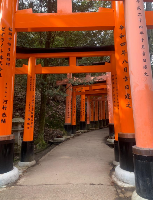 후시미 이나리 신사는 수많은 주황색 도리이의 행렬이 장관을 이루는 곳입니다. 경사진 언덕을 따라 늘어선 도리이는 마치 여우가 걸어가는 듯한 모습을 연출하며, 방문객들에게 신비롭고 경건한 느낌을 선사합니다. 또한 이 신사에는 여우 신상이 모셔져 있어 여우의 수호를 받는다는 믿음이 깊습니다.