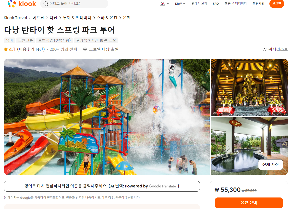다낭 탄타이 핫스프링파크 투어는 클룩사이트에서 쉽게 예약하실 수 있으며, 현재 할인된 금액에 이용하실 수 있습니다.