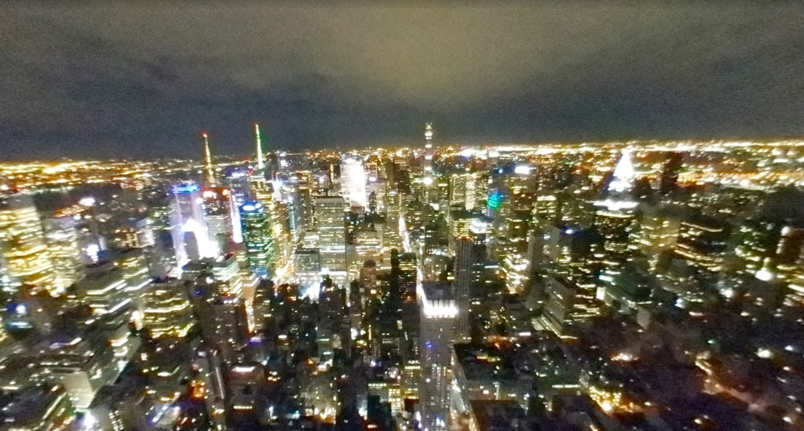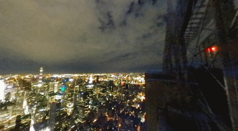 건물 꼭대기에 있는 전망대에서는 뉴욕 시의 아름다운 스카이라인을 한눈에 볼 수 있습니다. 맑은 날씨에는 멀리 보이는 자유의 여신상과 허드슨 강, 센트럴 파크 등을 감상할 수 있습니다. 밤에는 다양한 색상의 조명이 건물을 화려하게 밝혀 도시의 야경을 더욱 아름답게 만듭니다.