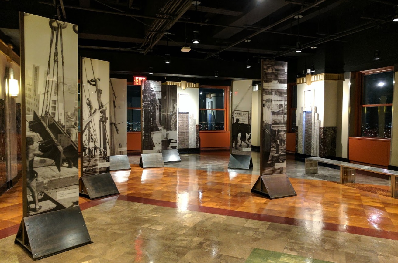 빌딩 로비에서 두 가지 전시가 열리고 있으며 하나는 데얼 투 드림(Dare to Dream), 다른 하나는 서스테인어빌리티(Sustainability)입니다. 전시를 통해 엠파이어 스테이트 빌딩의 과거과 미래를 살펴보는 것도 좋은 거 같네요 ~