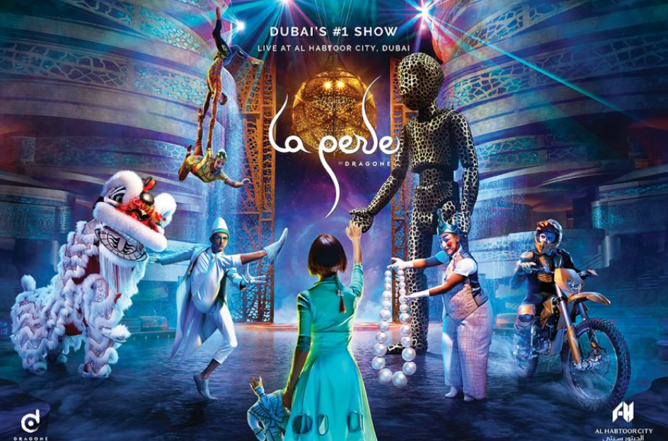 두바이여행에서 수상 무대를 기반으로 한 라이브쇼인 La Perle by Dragone 예술서커스 공연을 감상하며 몰입형 예술 공연, 수상 및 공중 곡예를 수행하는 곡예사, 이미지 및 기술의 융합에 감탄해보세요~