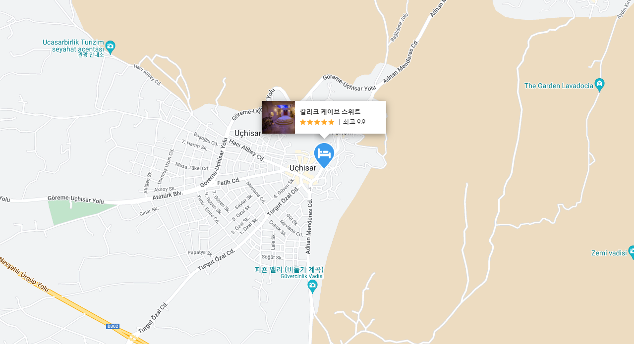 위치가 우치사의 중앙이라 뷰가 좋고 다른 호텔들은 차를 좁은 골목에 세워야 하는데 칼릭케이브는 골목 초입에 넓은 공용주차장과 가까와서 거기다 무료로 세울수도 있어서 편했어요.화장실이 넓고 벽에 열선이 달려있어서 속옷 빨아널기 좋았고 방이 따뜻했어요. 리셉션에 주인이 여행 동선도 짜주고 나중에 렌트카회사와서 문제도 잘 해결해줘서 고마왔습니다.직원들도 모두 친절했습니다. 단 호텔 내에 레스토랑은 없어서 아침을 다른데서 조달하는데 푸짐했어요.