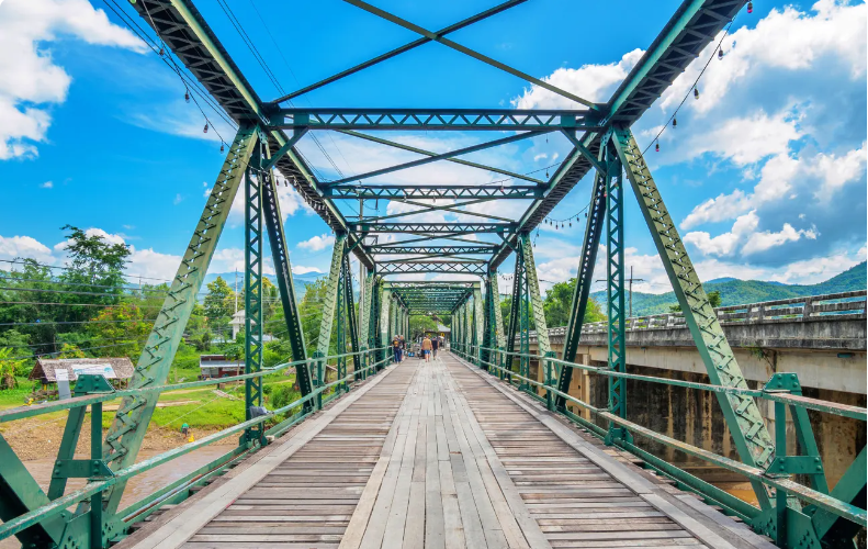 긴 드라이브 끝에 메모리얼 브릿지에 도착합니다. 이 목조 다리는 치앙마이에서 버마까지 가는 길 중 빠이에 오면 절대 놓쳐서는 안 될 유적지입니다.