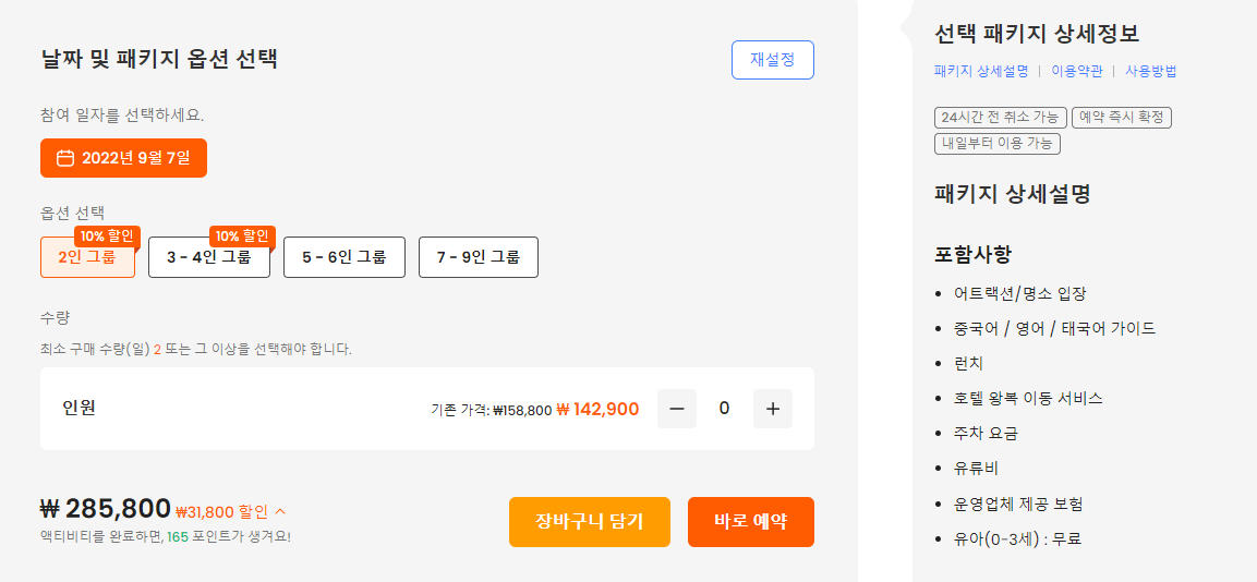 일정은 액티비티 당일 교통 및 기상 상황에 따라 변경될 수 있습니다.