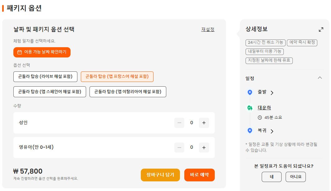 출발 시간: 10:45am, 2:45pm, 5:00pm