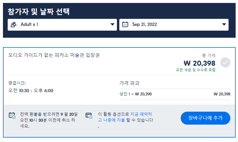 피카소미술관 종일 우선 입장권 예약후 사용방법