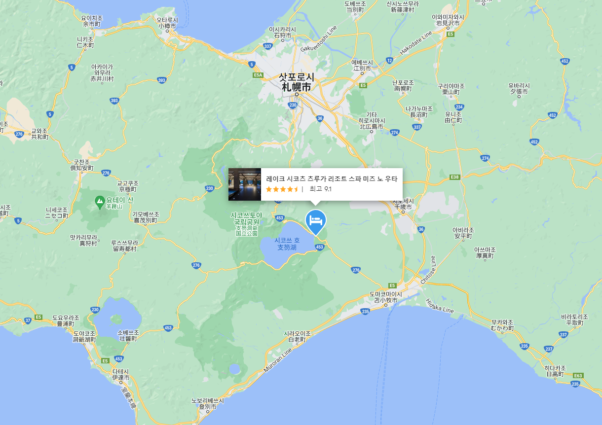 주변은 호수 산책 외에는 할 것이 없지만, 호수 산책만으로 힐링하기 좋은 곳으로 넓은 객실, 정갈하고 맛있는 식사를 제공합니다. 홋카이도 신치토세공항, 미나미치토세역, 치토세역에서 무료 셔틀을 운영하여 교통편 걱정없이 이동하기에도 좋으며앞에 위치한 시코츠 호수 경관은 정말 말로 다 할 수 없을 만큼 멋진곳입니다.