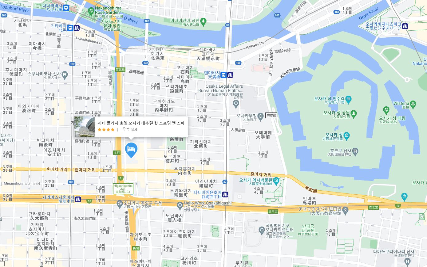 오사카호텔로 14층 꼭대기에 있는 온천이 무료로 제공되고 오사카성 접근성이 좋은 시티플라자 오사카 호텔 앤 스파 (CITYPLAZA OSAKA HOTEL & SPA)는 여행후에 하루 피로를 풀기에 좋은 곳으로 오사카 성 도보 10분 도톤보리 도보 25분 우메다 도보 40분 정도, 도보 5분 거리에 지하철역이 있습니다.