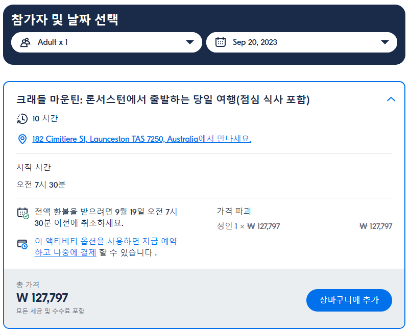 크래들 마운틴 론서스턴에서 출발하는 점심 식사 포함 당일 여행(Cradle Mountain Day Trip from Launceston with Lunch)은 GET YOUR GUIDE 사이트에서 예약하실 수 있습니다. 사이트는 특히 전세계 대부분의 나라, 지역의 투어, 교통편 있어, 쉽게 찾을 수 없는 여행지의 다양한 투어 및 서비스를 이용할 수 있는 글로벌 사이트로 한국어사이트는 지원하지 않습니다. (글로벌 한국어 여행사이트를 찾으신다면 klook 여행사이트 추천합니다. 함께 사용하시면 더욱 편하게 여행하실 수 있습니다. klook에 찾는 정보가 없다면 GET YOUR GUIDE에서 찾으시면 됩니다.)