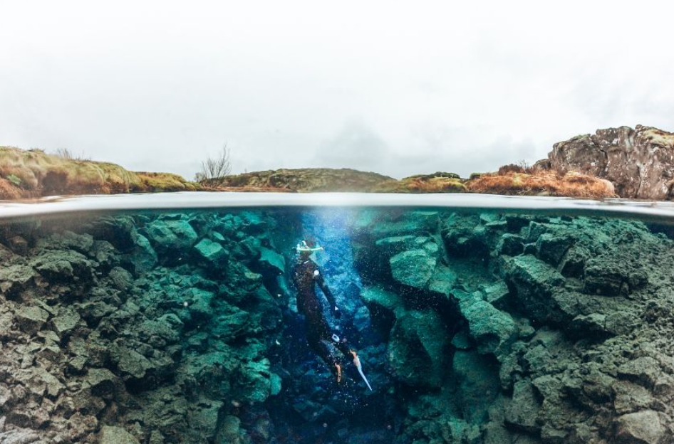 Silfra fissure는 세계 최고의 다이빙 장소 중 하나이며, 레이캬비크에서 약 50km 또는 차로 45분 거리에 있는 Thingvellir 국립 공원의 유네스코 세계 유산 의회 사이트에 있습니다.