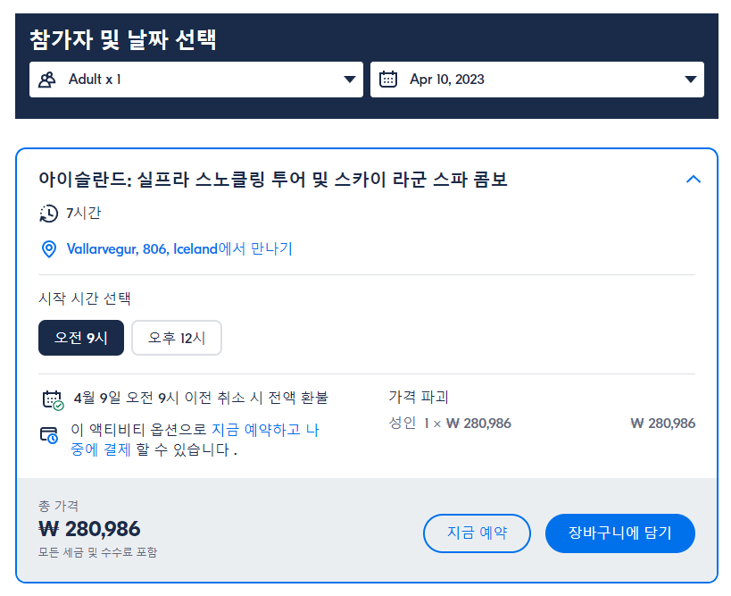 실프라의 스노클링과 스카이라군 투어에 참여하시면 북미와 유라시아 지각판 사이에서 스노클링 아침 활동 후 스카이 라군에서 몸을 풀거나 스카이 라군에 연락하여 여행 계획에 가장 적합한 다른 시간과 날짜로 예약을 옮길 수도 있습니다!